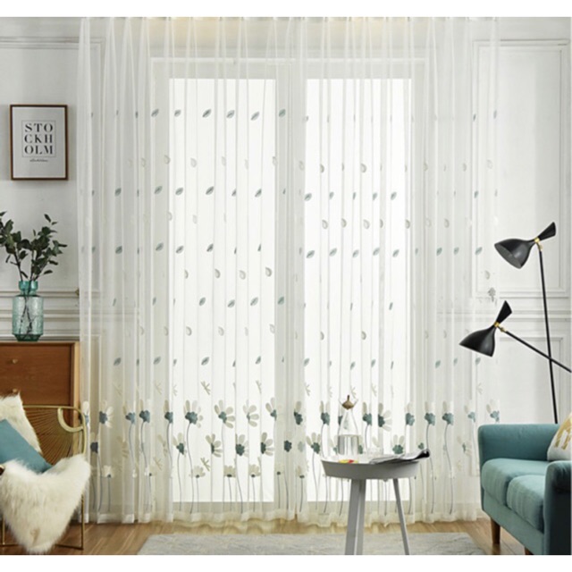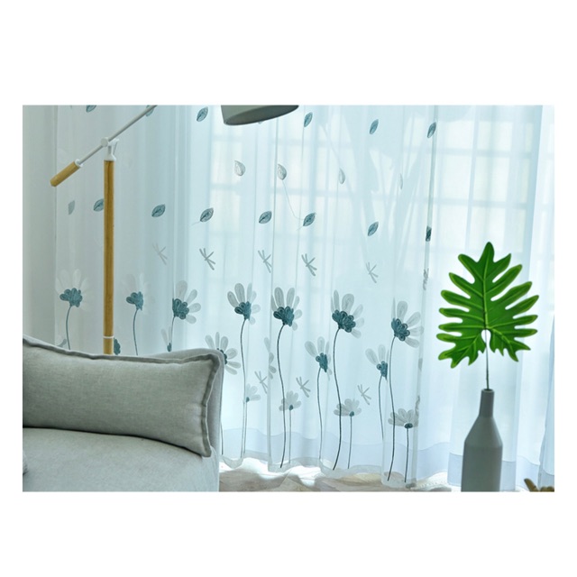 Nhà cửa & Đời sống > Trang trí nhà cửa > Rèm cửa, màn che || Rèm Voan Đẹp Giá Tốt, Rèm Voan Thêu Hoa Xinh Xắn, Rèm Voan Trang Trí ( hoạ tiết Hoa Cúc Xanh )Còn hàng