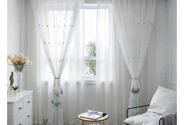 Rèm Voan Đẹp Giá Tốt, Rèm Voan Thêu Hoa Xinh Xắn, Rèm Voan Trang Trí ( hoạ tiết Hoa Cúc Xanh )CÁC KÍCH THƯỚC