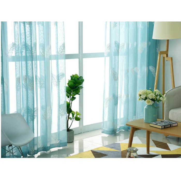 Nhà cửa & Đời sống > Trang trí nhà cửa > Rèm cửa, màn che || Rèm voan thêu chỉ nổi lông vũ xanh nhiều - kích thướcCòn hàng