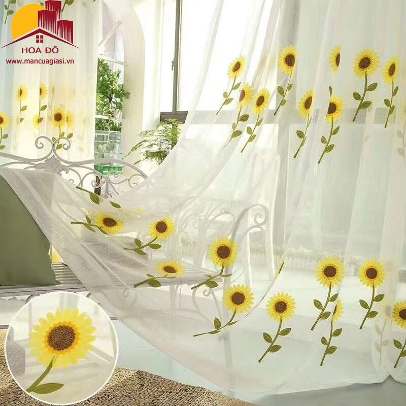 Rèm Voan Thêu Hoa Hướng Dương Màu Vàng Loại 1 Trang Trí Nhà Cửa, Rèm Phòng Ngủ, Phòng Khách, Ban Công, Background