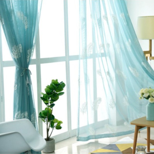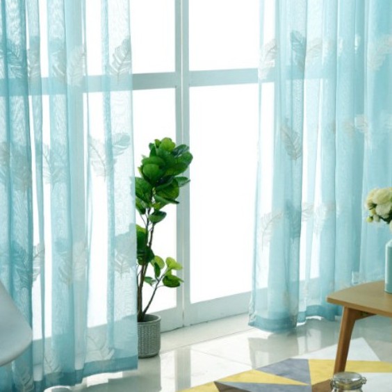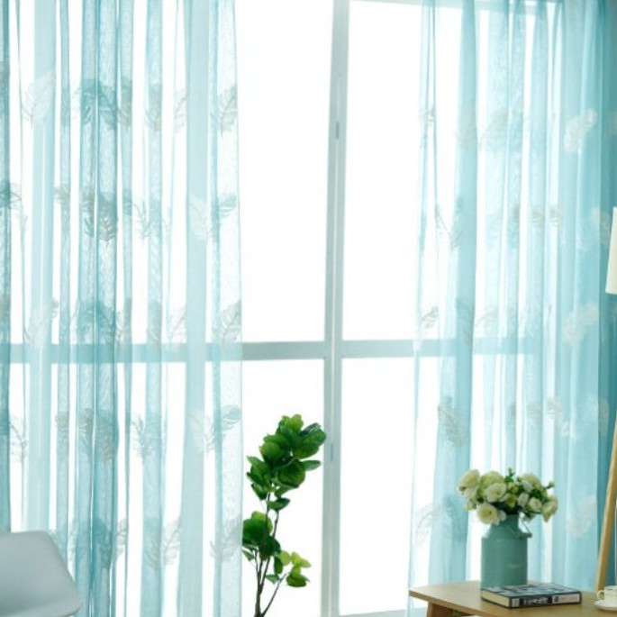 Giới thiệu Rèm voan thêu lông vũ xanh cao cấp nhiều kích thước ( đọc kỹ thông tin sản phẩm )