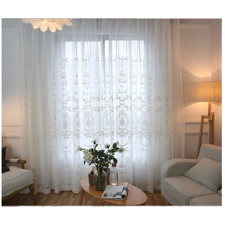 Nhà cửa & Đời sống > Trang trí nhà cửa > Rèm cửa, màn che || rèm voan trắng họa tiết Châu Âu ( nhiều Kích thước )Còn hàng