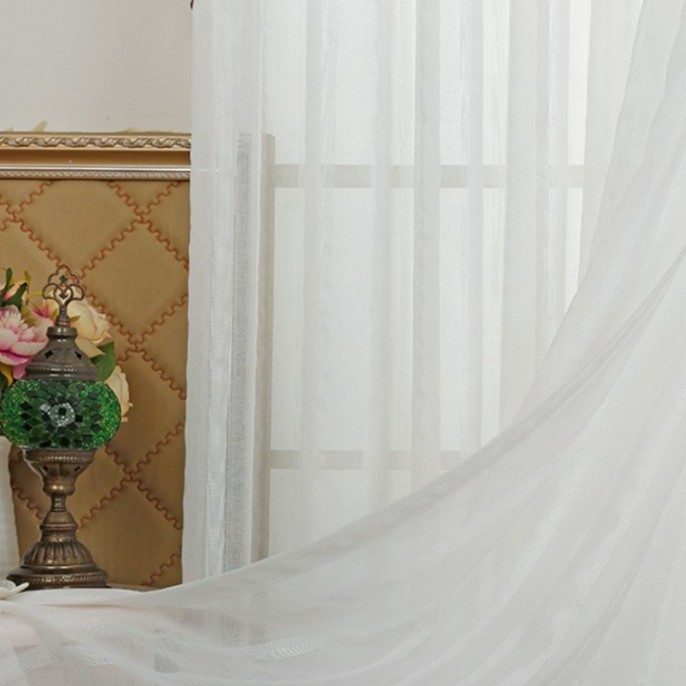 ** Rèm voan trắng chất liệu voan sợi mềm, họa tiết thêu chìm sọc nhỏ trang nhã
