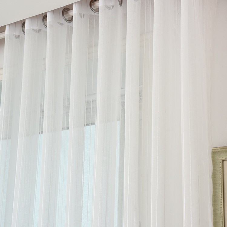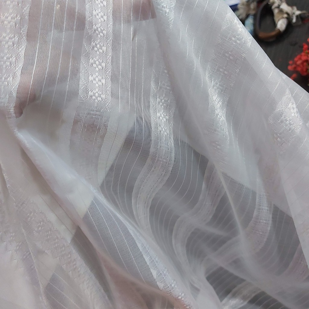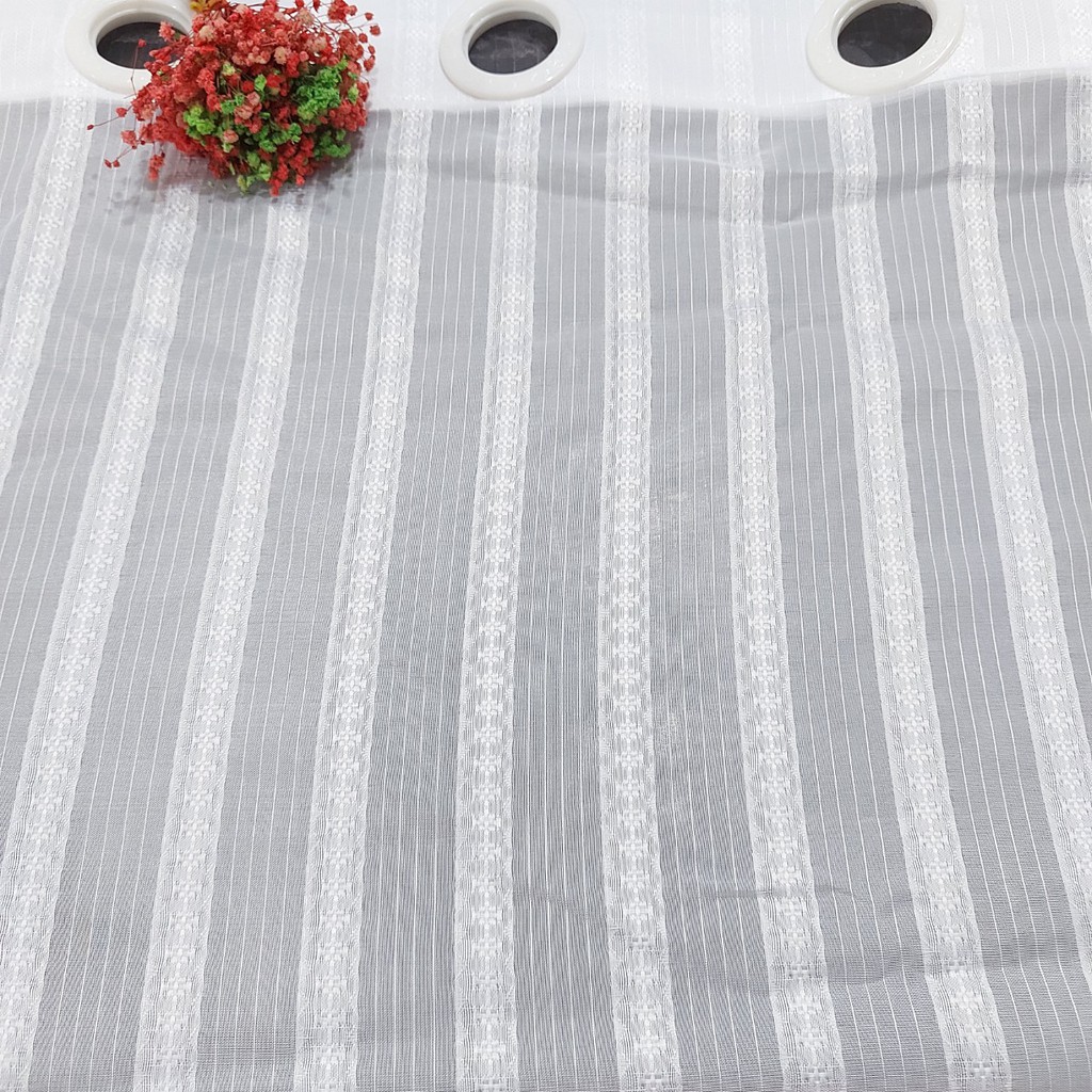 ** Rèm voan trắng chất liệu voan sợi mềm, họa tiết thêu chìm sọc nhỏ trang nhã