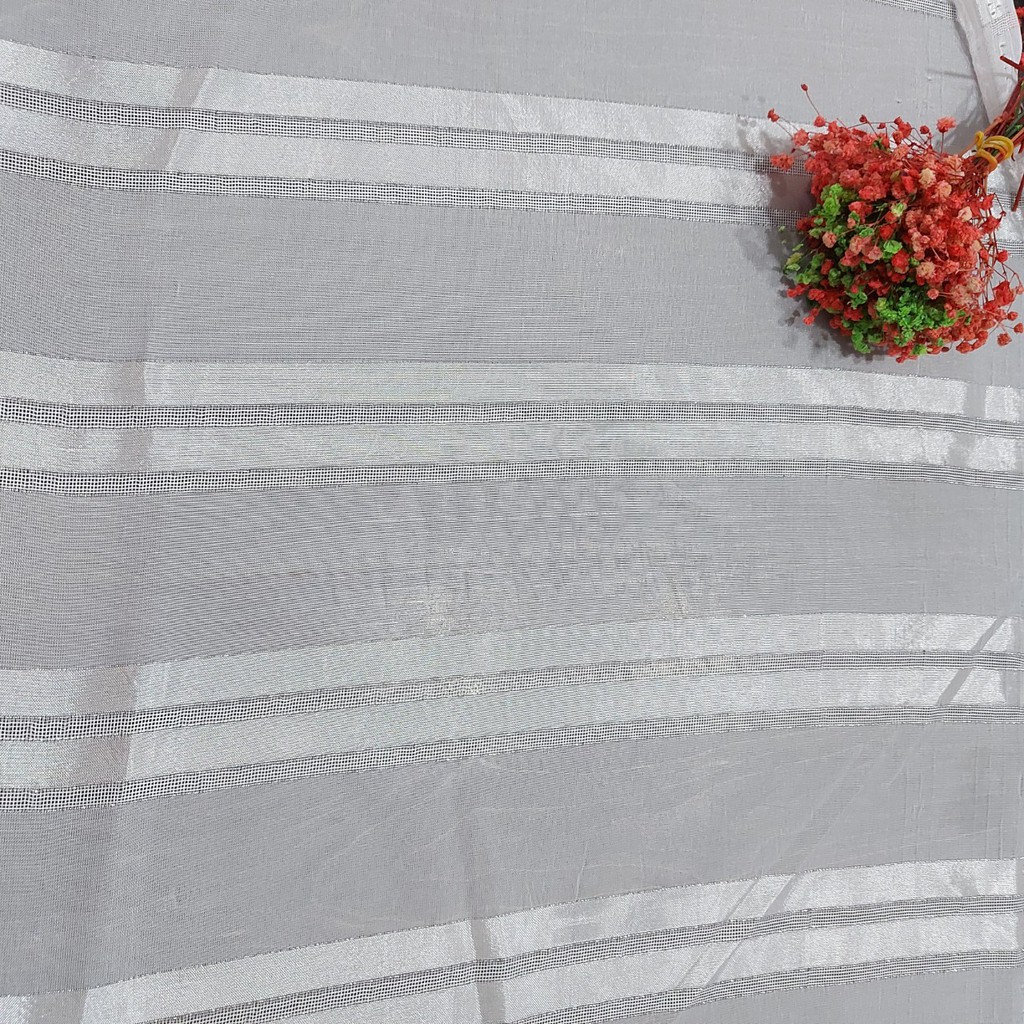 ** Rèm voan trắng chất liệu voan sợi mềm, họa tiết thêu chìm sọc nhỏ trang nhã