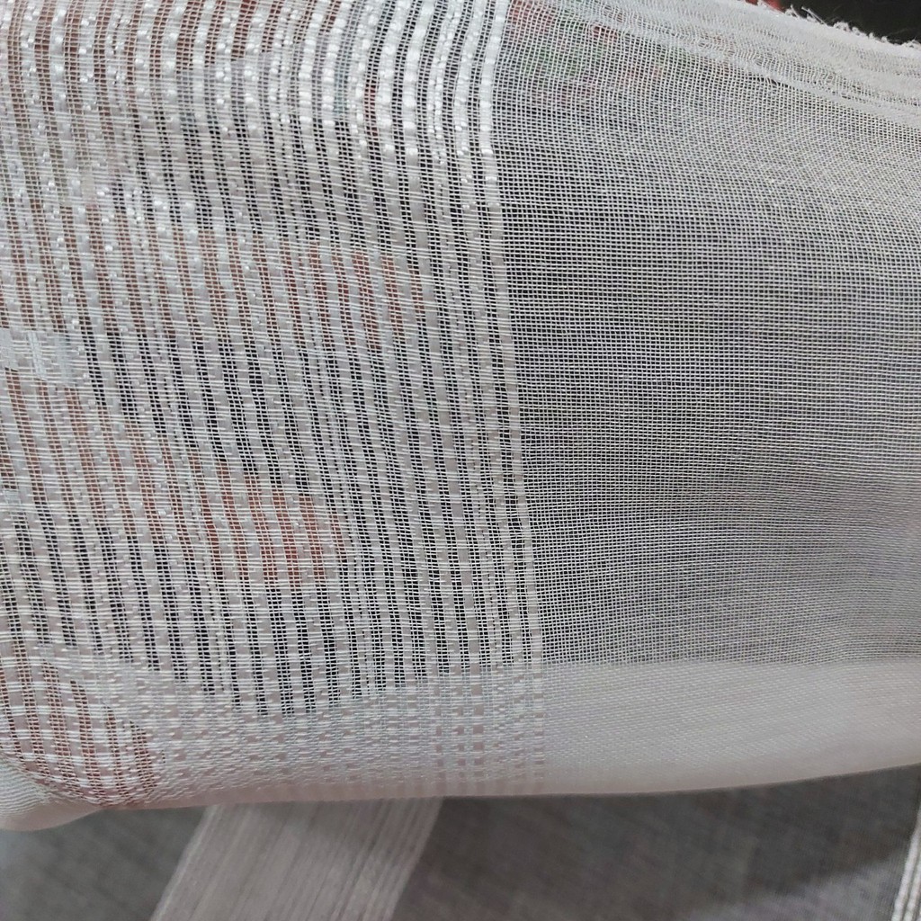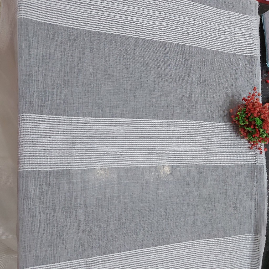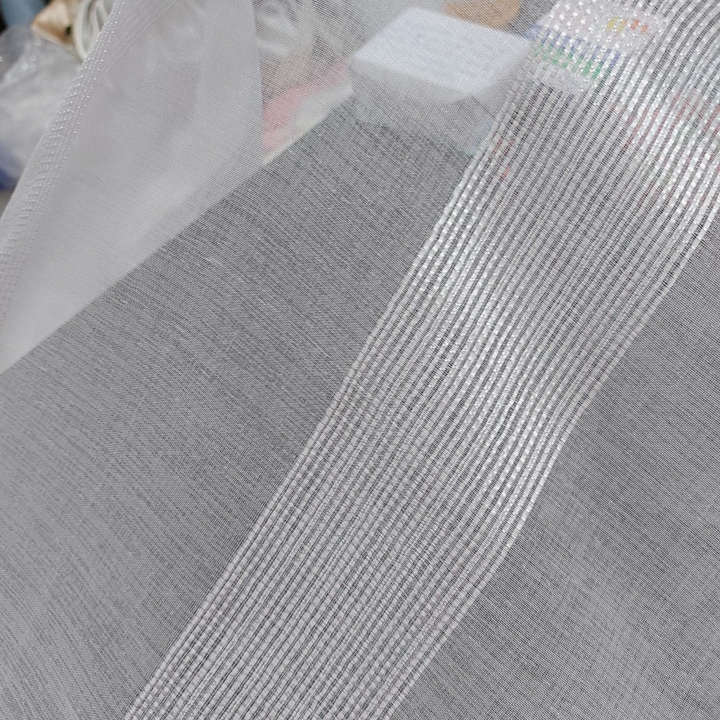 ** Rèm voan trắng chất liệu voan sợi mềm, họa tiết thêu chìm sọc nhỏ trang nhã