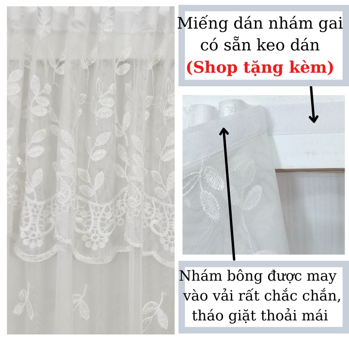 Rèm voan trắng, Rèm voan thêu, rèm voan dán tường trang trí cửa sổ phòng ngủ phòng khách, rèm cửa dán REMODE