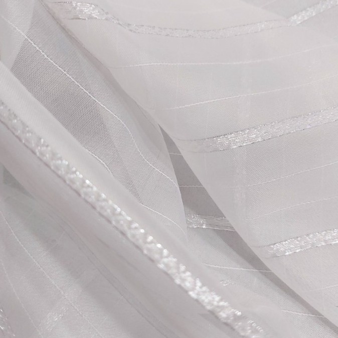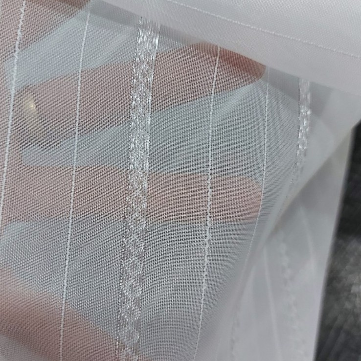 ** Rèm voan trắng chất liệu voan sợi mềm, họa tiết thêu chìm sọc nhỏ trang nhã