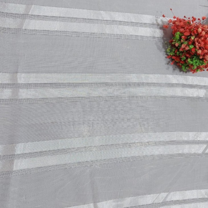 ** Rèm voan trắng chất liệu voan sợi mềm, họa tiết thêu chìm sọc nhỏ trang nhã