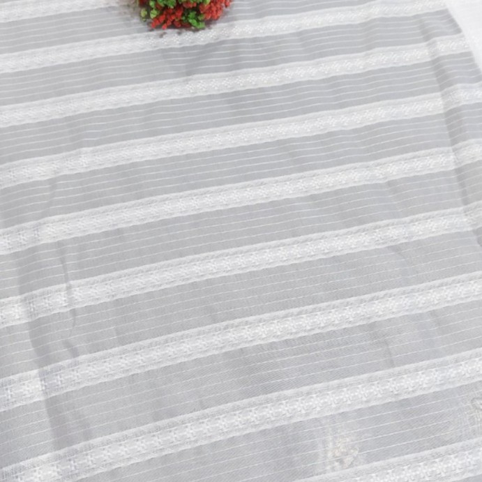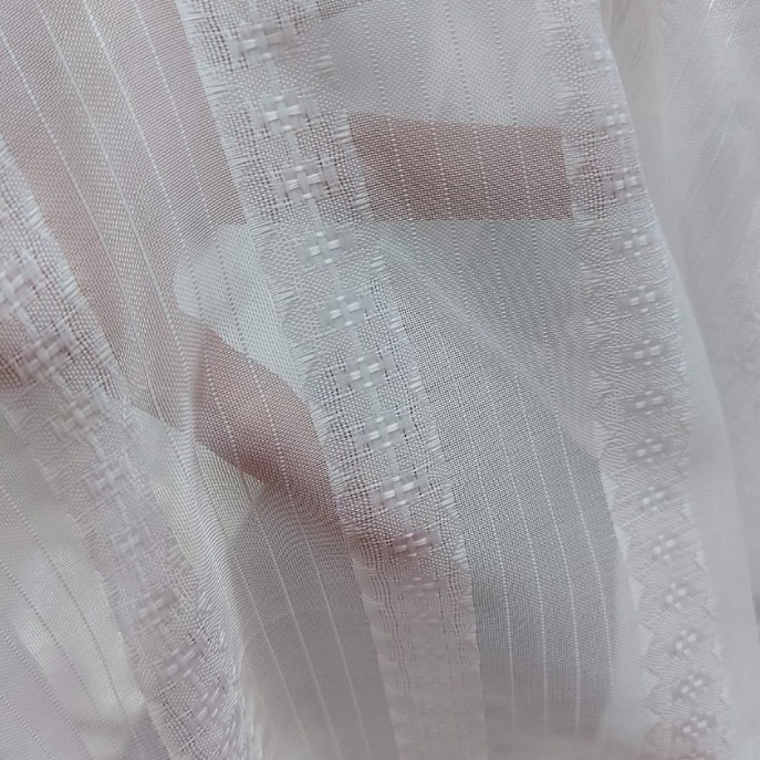 ** Rèm voan trắng chất liệu voan sợi mềm, họa tiết thêu chìm sọc nhỏ trang nhã