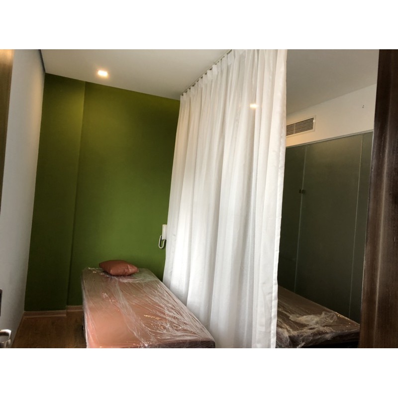 Rèm voan trắng trơn và voan giọt mưa trang trí cho phòng hoặc spa.