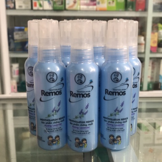 - Cách dùng: Để cách bề mặt da 10-15cm, phun một lượng thích hợp lên trên da rồi thoa đều. Đối với vùng mặt hay cổ, phun dung dịch ra lòng bàn tay rồi thoa đều. Để phòng chống muỗi hiệu quả, nên sử dụng Remos mỗi 8 giờ.