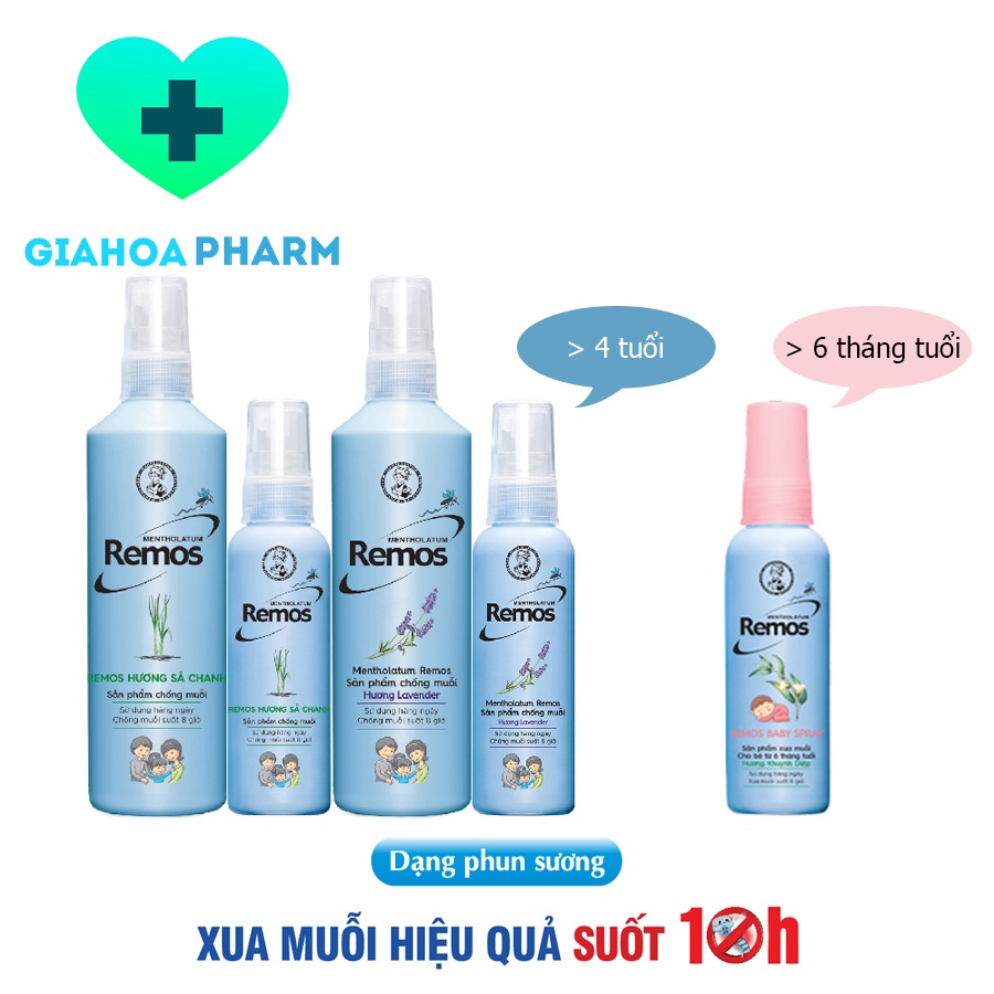 Mentholatum Remos - Dạng phun sương- Sản phẩm chống muỗi độc đáo, chứa Diethyltoluamide 15% đã được WHO và EPA chứng nhận hiệu quả và tính an toàn trong việc xua muỗi. Mentholatum Remos đạt hiệu quả xua muỗi suốt 10 giờ. Mentholatum Remos còn có Aloe Vera và Vitamin E giúp giữ ẩm và nuôi dưỡng da.