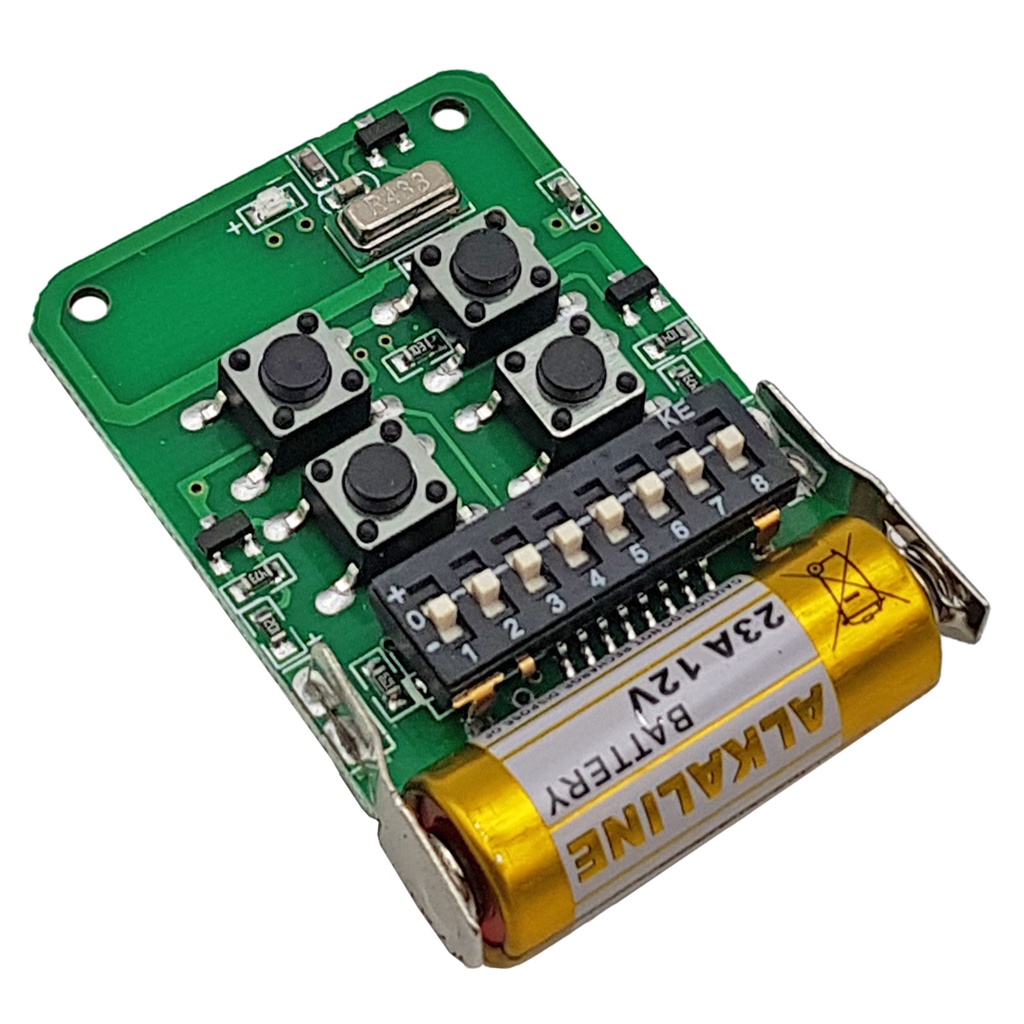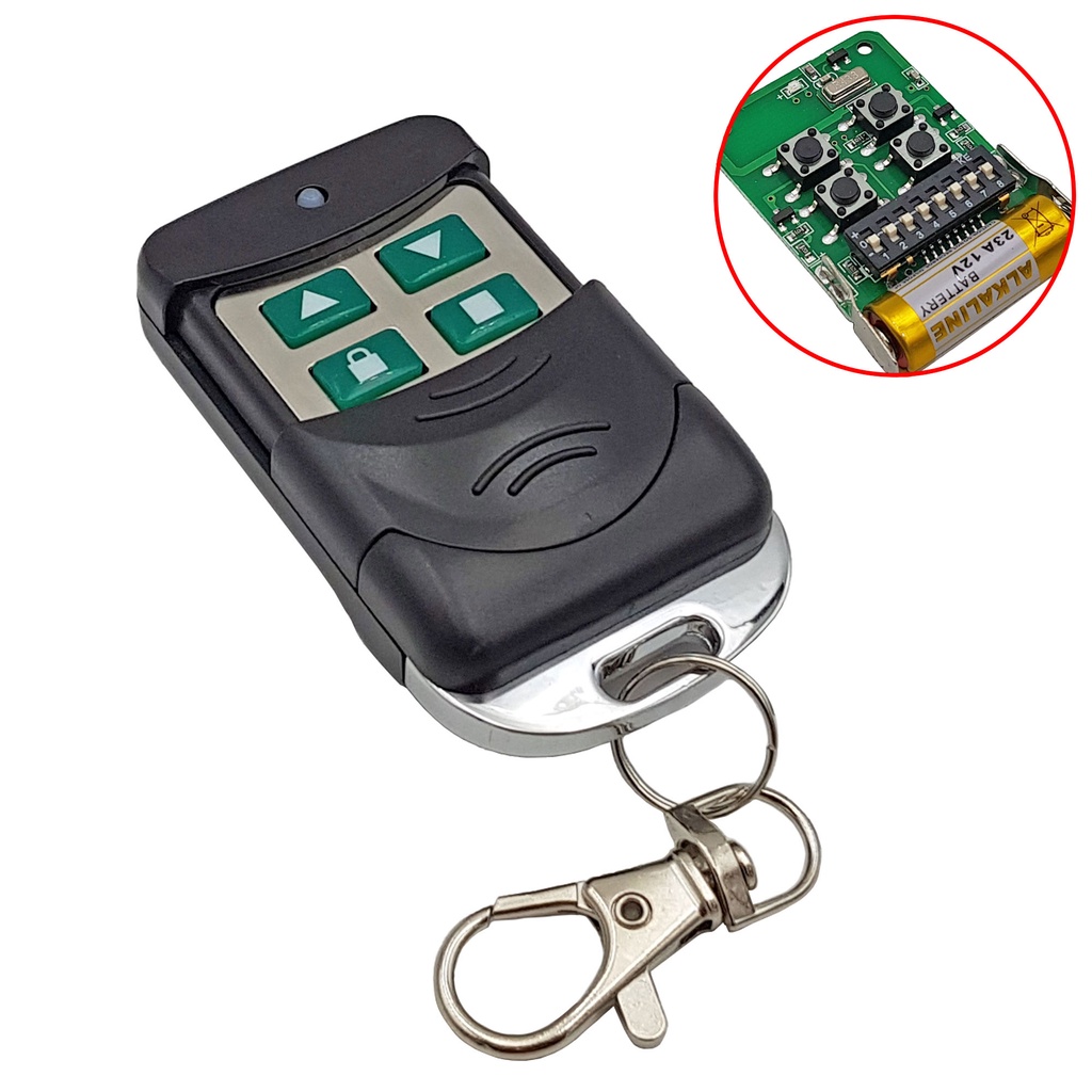 Remote 4 kênh mã gạt được thiết kế với 4 nút nhấn riêng biệt cho 4 kênh khác nhau của chip. Thiết bị nhỏ gọn, dễ dàng bỏ túi, cầm tay hay treo móc khóa. Được sử dụng cho điều khiển cửa cuốn, cửa nhà để xe, điều khiển cửa cổng, đèn led điều khiển từ xa,…Remote được mã hóa bằng cách gạt các công tắc bên trong remote, có 8 công tắc bạn có thể gạt bất kì công tắc nào tùy ý, các remote được gạt giống nhau sẽ có ID giống nhau và ngược lại các remote được gạt khác khác nhau sẽ có ID khác nhau.