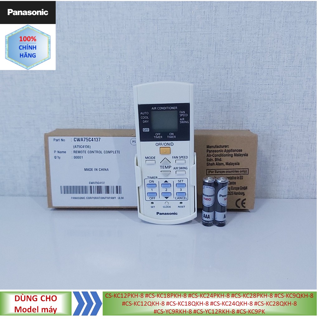 [Remote chính hãng] Điều khiển điều hòa Panasonic model CS-KC12PKH-8 #CS-KC18PKH-8 #CS-KC24PKH-8 + Tặng cặp pin 3A