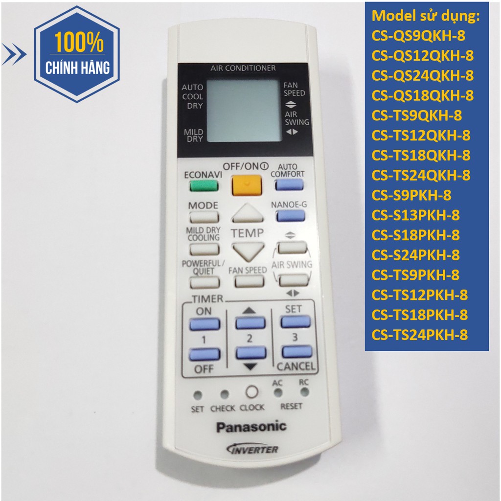 [REMOTE CHÍNH HÃNG] Điều Khiển Máy lạnh Panasonic CS-S9PKH-8 // CS-QS9QKH-8 // CS-TS9QKH-8 // CS-TS9PKH