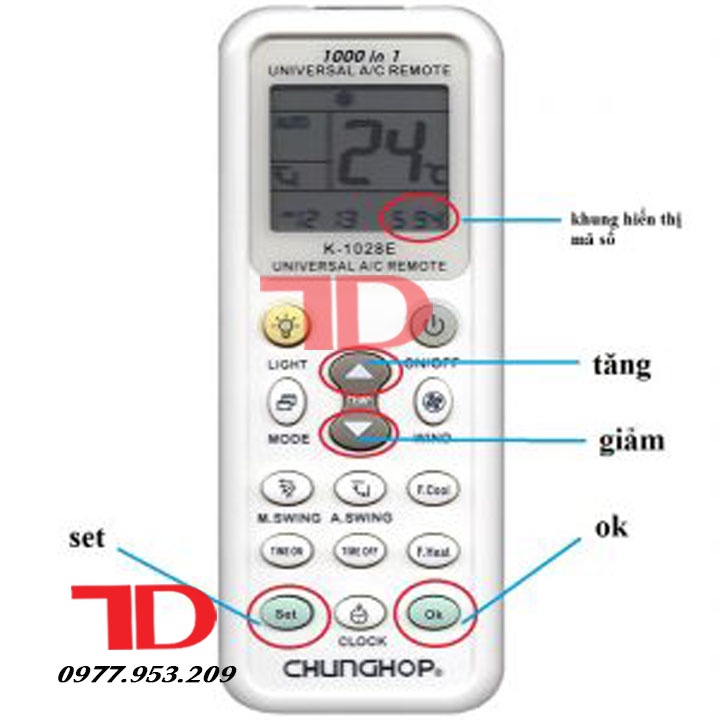 Giới thiệu Remote dành cho máy lạnh, điều khiển đa năng Chunghop K-1028E