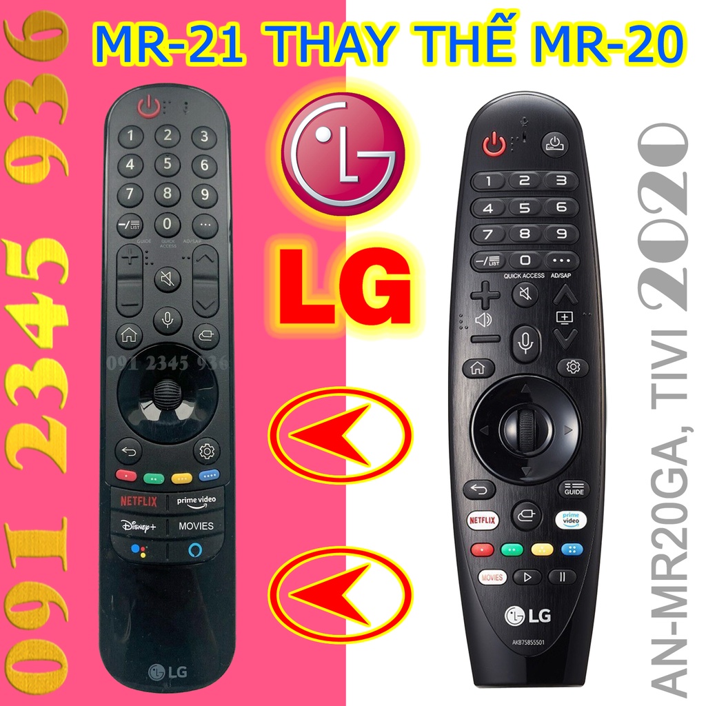 Remote Điều khiển tivi LG mẫu năm 2021 + 2020 + 2019 + 2018 + 2017 có "Chuột bay", có "Giọng nói" và tặng Pin. Magic Remote AN-MR21GA mã AKB75855501 Made in INDONESIA: sử dụng tốt và thay thế cho Magic Remote AN-MR20GA, Magic Remote AN-MR19BA, Magic Remote AN-MR18BA.