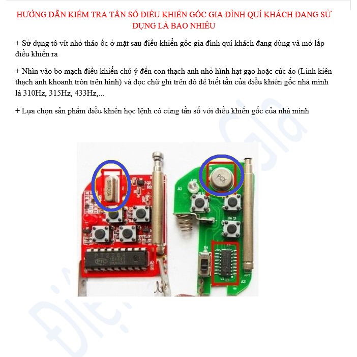 Lưu ý : Điều khiển gốc (Điều khiển A) và Điều khiển học lệnh (Điều khiển B) phải có chung tần số với nhau