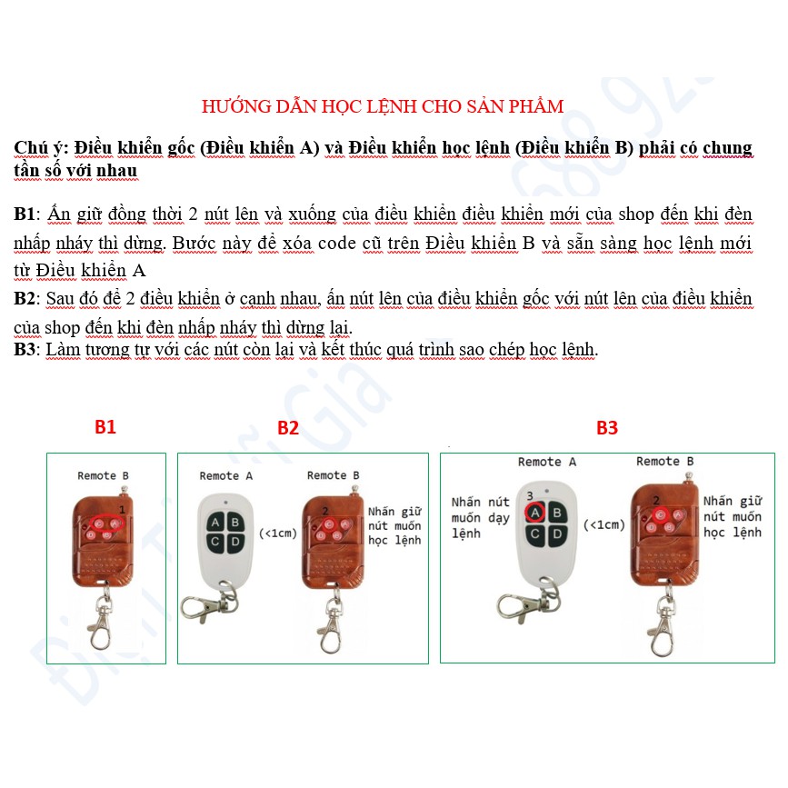 HƯỚNG DẪN SỬ DỤNG SẢN PHẨM (LƯU Ý: CHỈ HỌC ĐƯỢC LỆNH VỚI LOẠI ĐIỀU KHIỂN GỐC CÓ CÙNG TẦN SỐ)