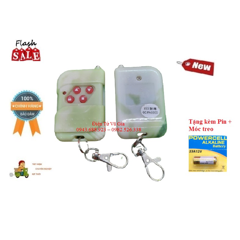 Remote Điều khiển cửa cuốn tự học lệnh, chống nước, màu xanh ngọc đẹp- Hàng chính hãng mới 100% Tặng kèm Pin!!!