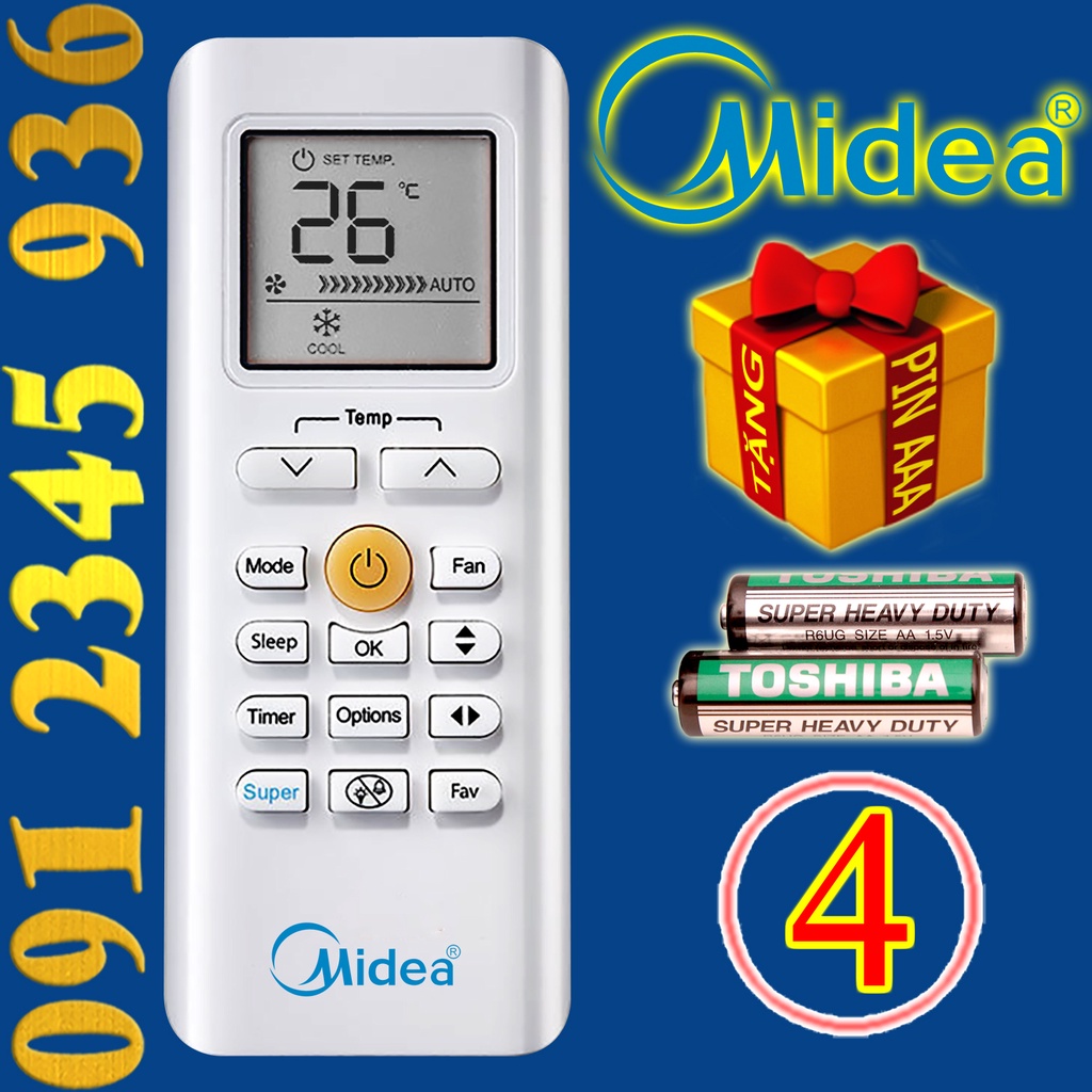 ❤👍Điều khiển Midea sử dụng pin AAA thuận tiện cho việc tháo lắp, thay thế.