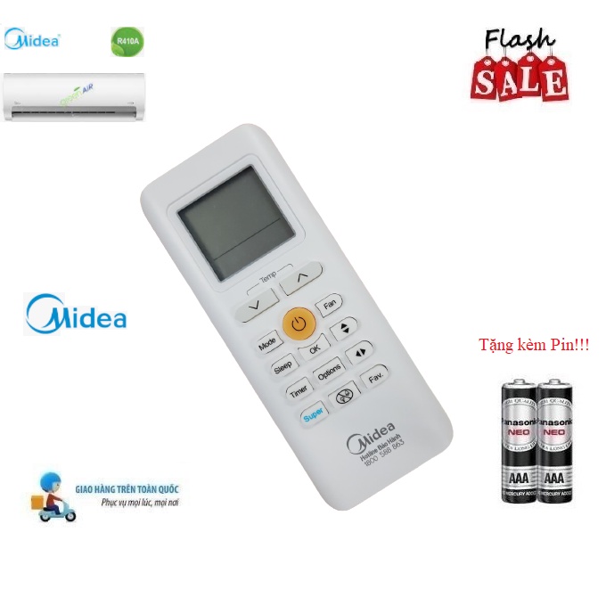 Remote Điều khiển điều hòa Midea 1& 2 chiều Inverter - Hàng chính hãng mới 100% chỉ cần lắp thêm pin sử dụng ngay không cần cài đặt