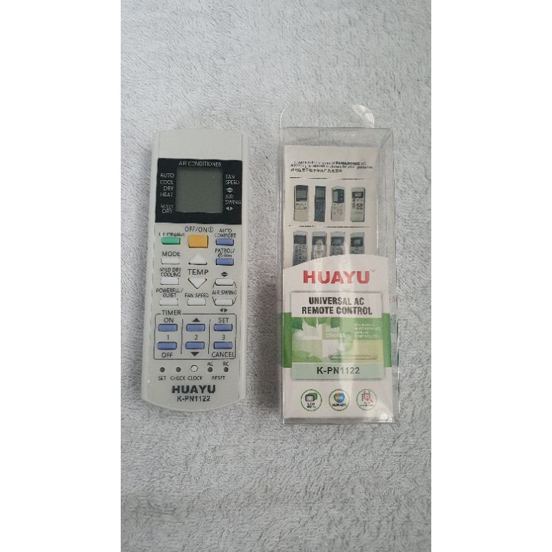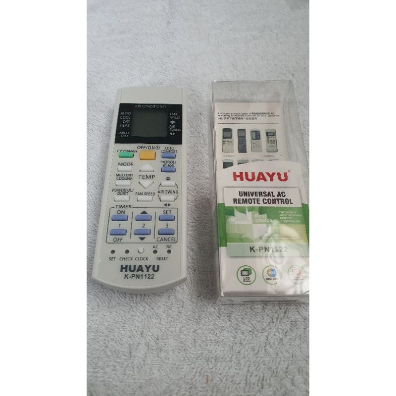 Remote máy lạnh Panasonic Huayu đa năng (máy điều hòa). Sử dụng được cho nhiều dòng máy lạnh Panasonic (xem hình) Xuất xứ : Trung Quốc Sử dụng 2 pin AAA. Hàng có hộp.Giá DUCKIES