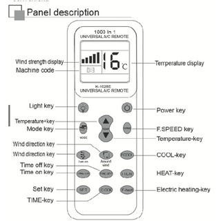 REMOTE ĐIỀU KHIỂN MÁY LẠNH ĐIỀU HÒA ĐA NĂNG K-1028E DÙNG PIN CÓ ĐÈN LED CHIẾU SÁNG TƯƠNG THÍCH HƠN 1000 LOẠI MÁY- Điều khiển điều hòa đa năng K-1028E cho điều khiển hơn 1000 loại điều hòa các loại, nhập mã code đơn giản dễ dàng sử dụng cho mọi loại điều hòa, giải pháp dự phòng hoàn hảo hay thay thế điều khiển bị hỏng.