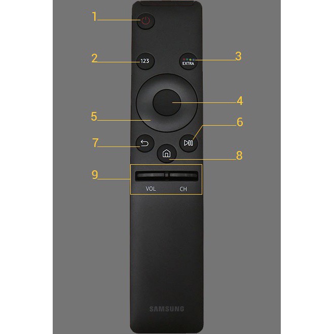 khiển tivi 2016 sử dụng loại remote cải tiến, rất gọn nhẹ và dễ sử dụng. Trong bài viết tìm hiểu cách dùng remote để điều khiển tivi Samsung K5500, 1. Nguồn (tắt, mở tivi).2. Hiển thị bàn phím số (dùng khi chọn kênh, nhập mật mã...).