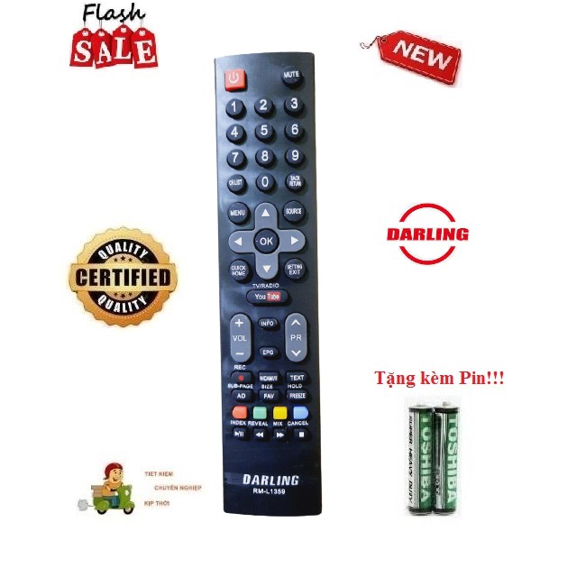 Remote Điều khiển tivi Darling RM-L1359 các dòng LED/LCD/Smart TV- Hàng loại tốt Tặng kèm Pin