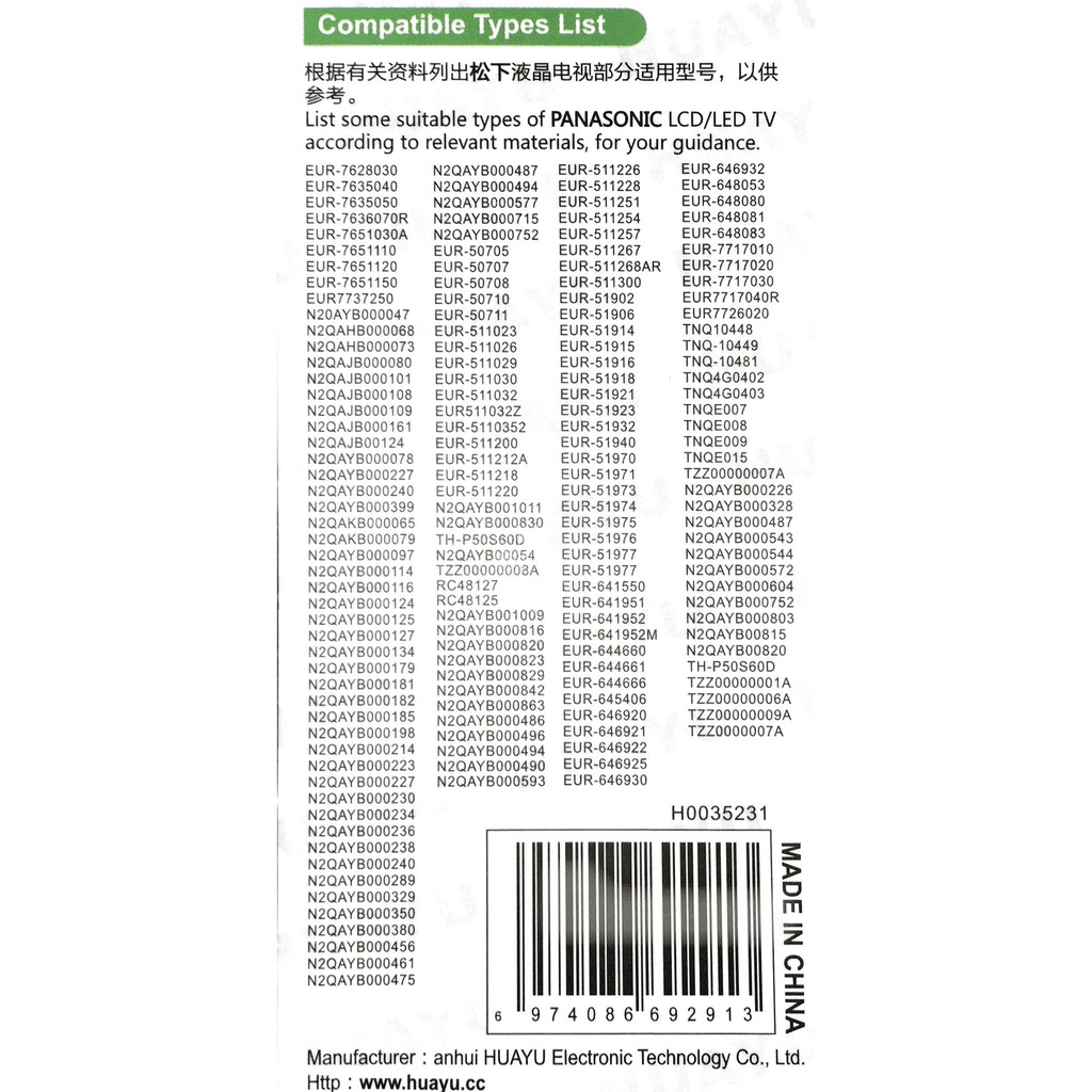 Kích thước nhỏ gọn, cầm nắm dễ dàng, phím mềm êm tay. Tương thích với hầu hết TV Panasonic SMART,LCD, Plasma, LED