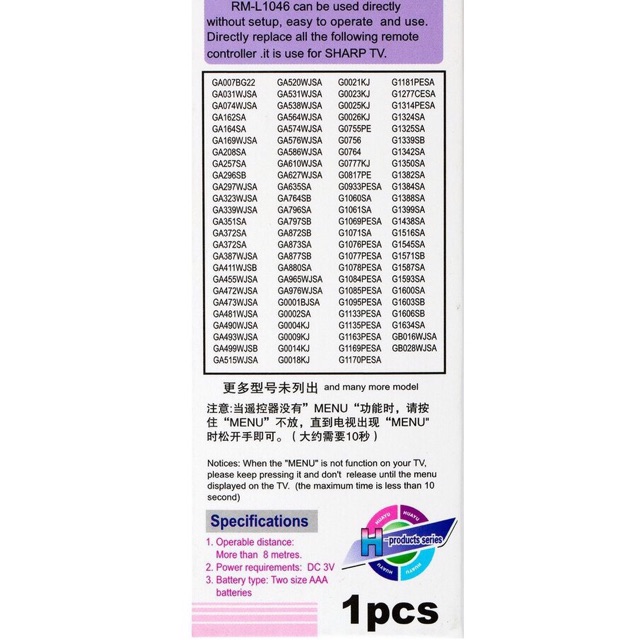 Tương thích với hầu hết TV Sharp LCD, Plasma, LED.