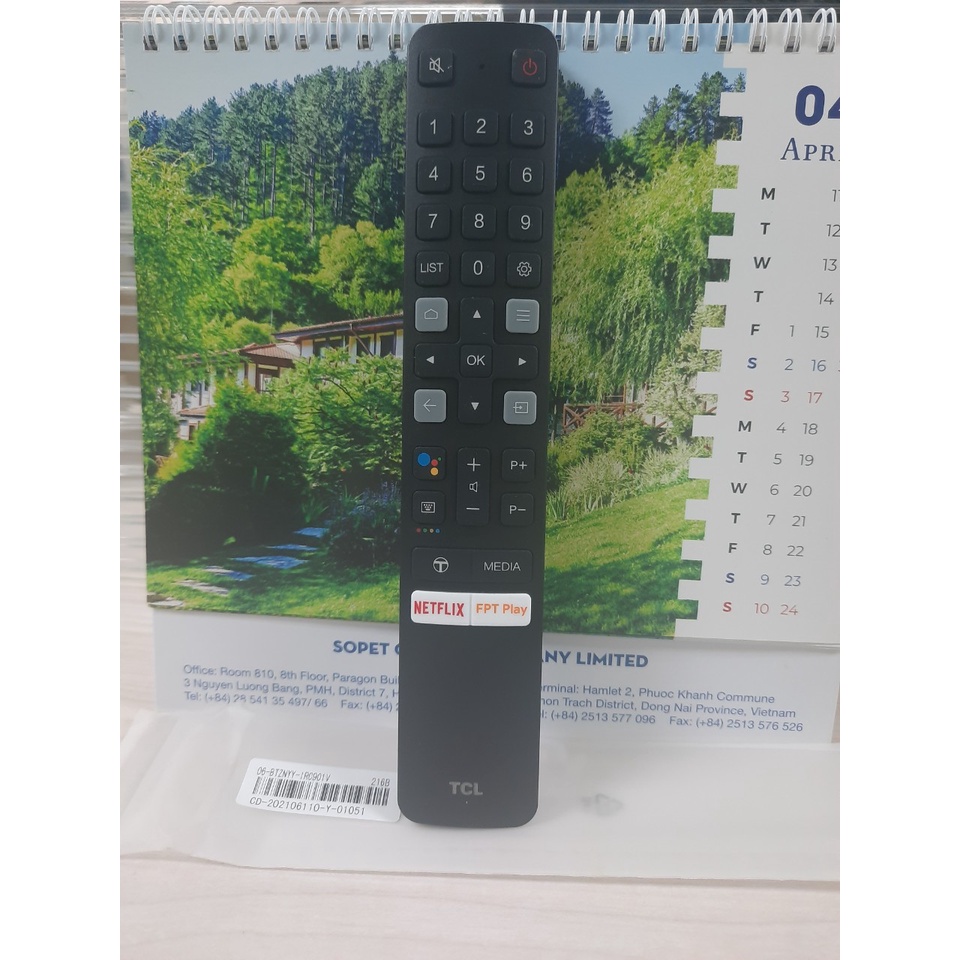 Sản phẩm Remote Điều khiển tivi TCL giọng nói nút Netflix, FPT Play- Hàng mới chính hãng 100% Tặng kèm Pin là hàng mới chính hãng nguyên tem được sản xuất tại nhà máy TCl, chất lượng cao được cửa hàng chúng tôi cam kết:- Cam kết sản phẩm mới chính hãng TCL nguyên tem chuẩn logo TCl trên thân và bên trong thân sản phẩm đúng như hình ảnh miêu tả