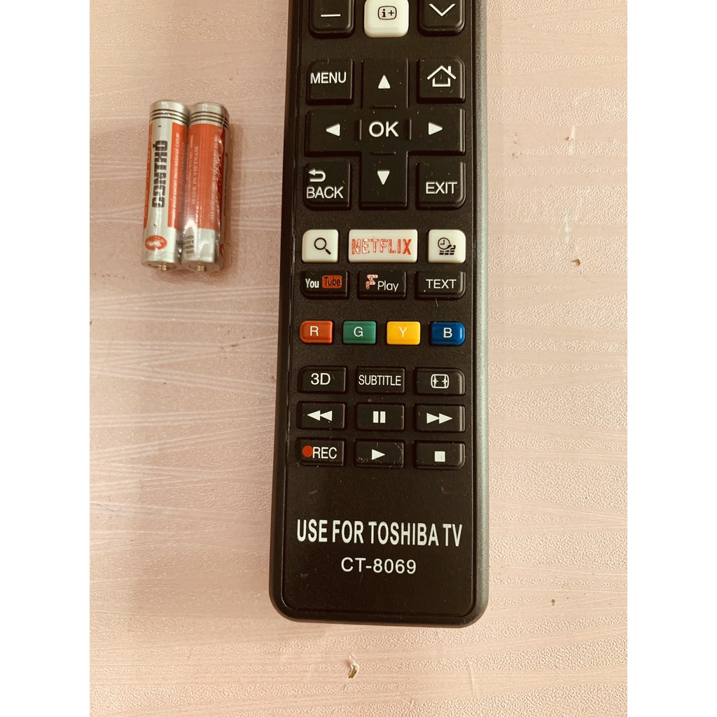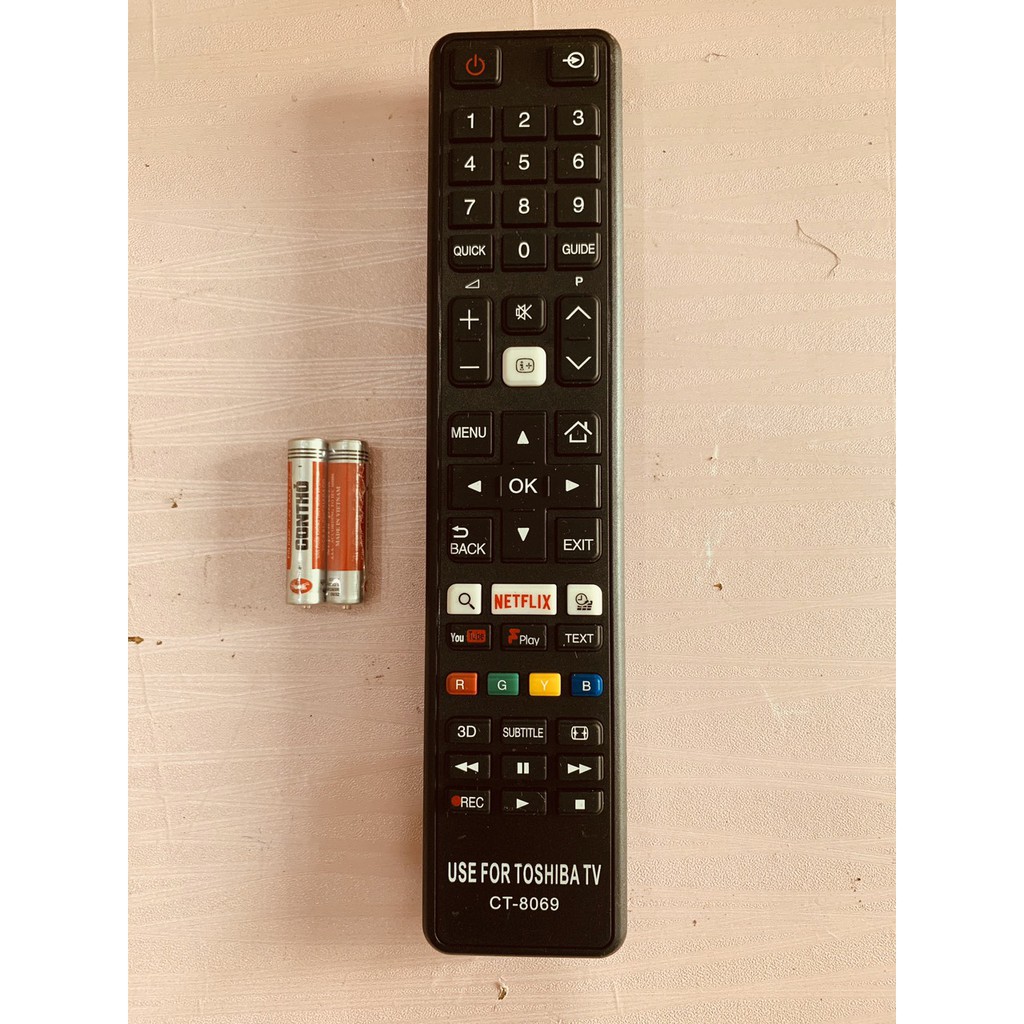 Mô tả sản phẩm: Điều khiển tivi Toshiba smart TV Toshiba CT-8069 32L 43U 43L 49L 49U 50U 55L 55U chỉ cần lắp thêm pin sử dụng ngay không cần cài đặt