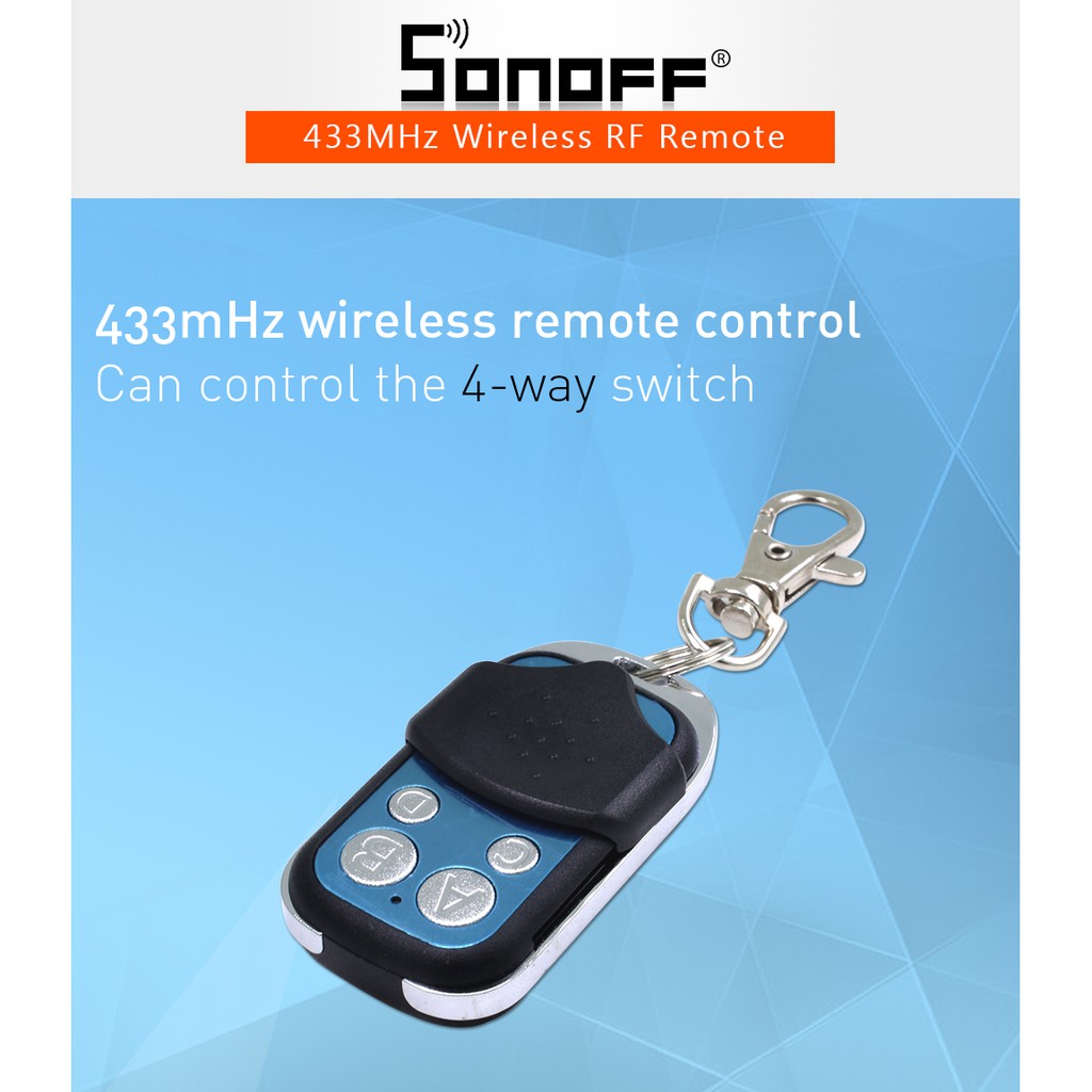 Remote điều khiển từ xa có 4 nút điều hướng, nhỏ gọn, giúp bạn điều khiển được các thiết bị công tắc có chức năng học lệnh tần số 433 Mhz ví dụ như công tắc của Sonoff.