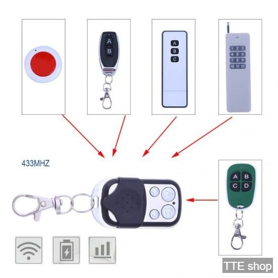Remote điều khiển từ xa 4 nút, sao chép lệnh remote điều khiển khác cùng tần số 433MHZ