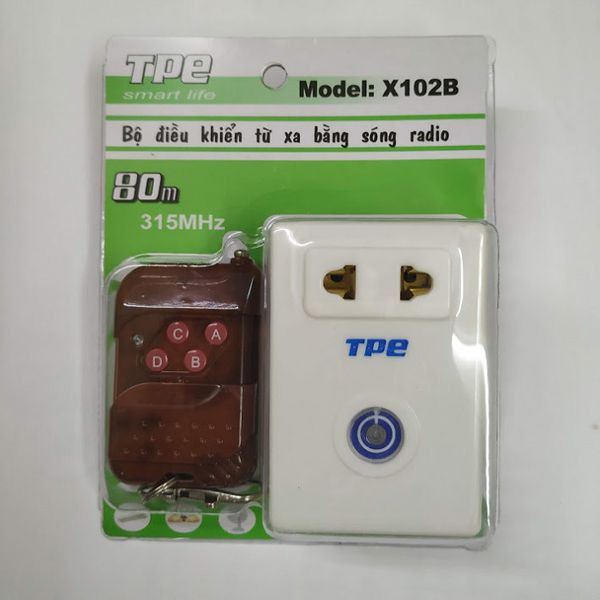 - X102B được cài đặt sẵn trên Remote nút A là On và B là Off, còn lại 2 nút C và D người sử dụng có thể mua thêm ổ cắm TF2A hoặc một thiết bị điều khiển từ xa khác của TPE để điều khiển thêm thiết bị khác và cách cài đặt theo hướng dẫn đi kèm