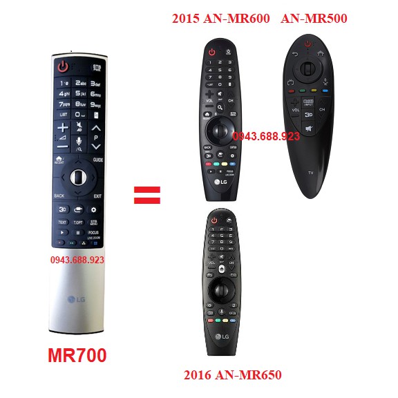 - Hiện các dòng sản phẩm Điều khiển TV LG giọng nói các năm 2014, 2015 model MR600, 2016 model MR650 hãng đã dừng sản xuất và thay thế bằng model MR700 đời mới nhất đa năng cho cả 3 đời 2014,2015,2016 hoạt động rất tốt tất cả các chức năng gồm cả MIC giọng nói, con trỏ chuột bay (Shop đã test thử)