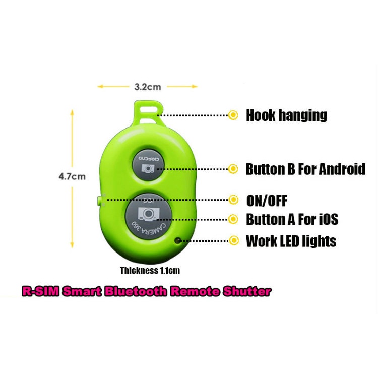 REMOTE HỖ TRỢ CHỤP HÌNH BẰNG KẾT NỐI BLUETOOTH TIỆN DỤNG, NHỎ GỌN DÙNG ĐƯỢC CHO HỆ ĐIỀU HÀNH IOS VÀ ANDROID- Chụp ảnh "tự sướng" chưa bao giờ dễ dàng hơn thế, bạn có thể sử dụng thiết bị này để chụp ảnh tử khoảng cách 10 mét. Sản phẩm hỗ trợ cả smartphone và tablet iOs và Android giúp bạn bắt kịp những khoảng khắc ấn tượng của mình và người thân.