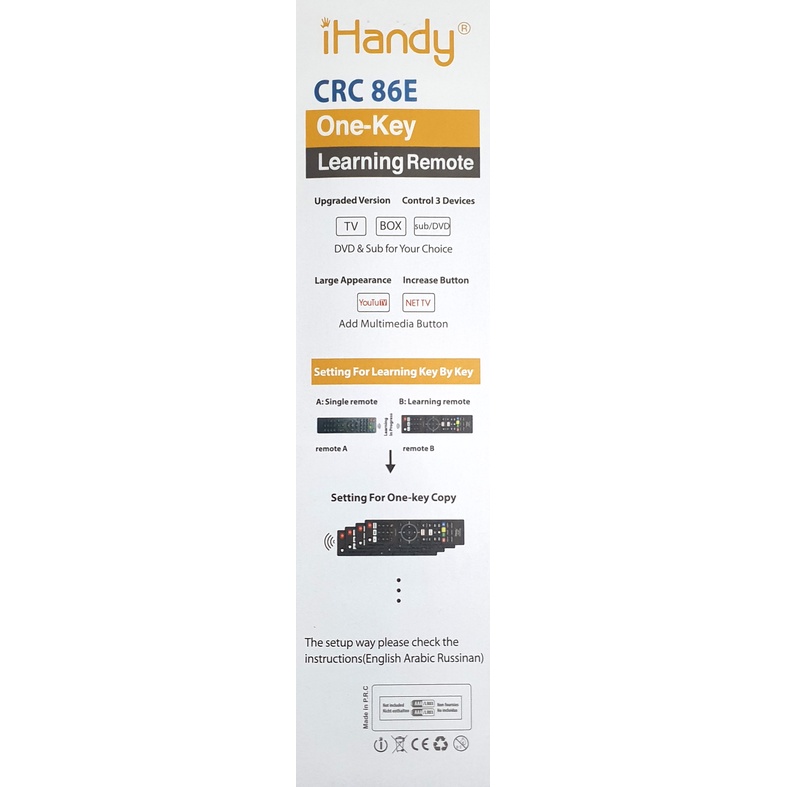 Thiết Bị Điện Gia Dụng > Tivi & Phụ kiện > Khác || Remote học lệnh 3 IN 1 iHandy CRC 86E tặng kèm pinCòn hàng