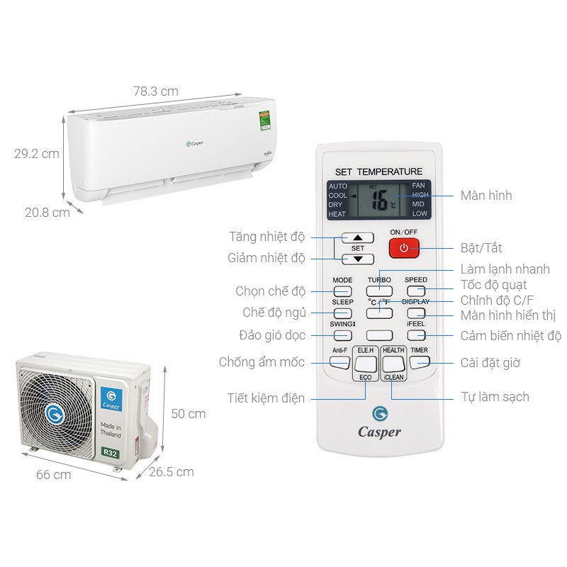 Giới thiệu Remote máy lạnh CASPER YKR-H/102E - Điều khiển điều hòa CASPER