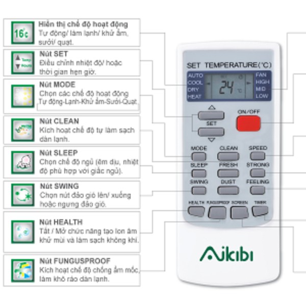 Giới thiệu REMOTE MÁY LẠNH AIKIBI MẪU 2 - ĐIỀU KHIỂN ĐIỀU HÒA AIKIBI MẪU 2