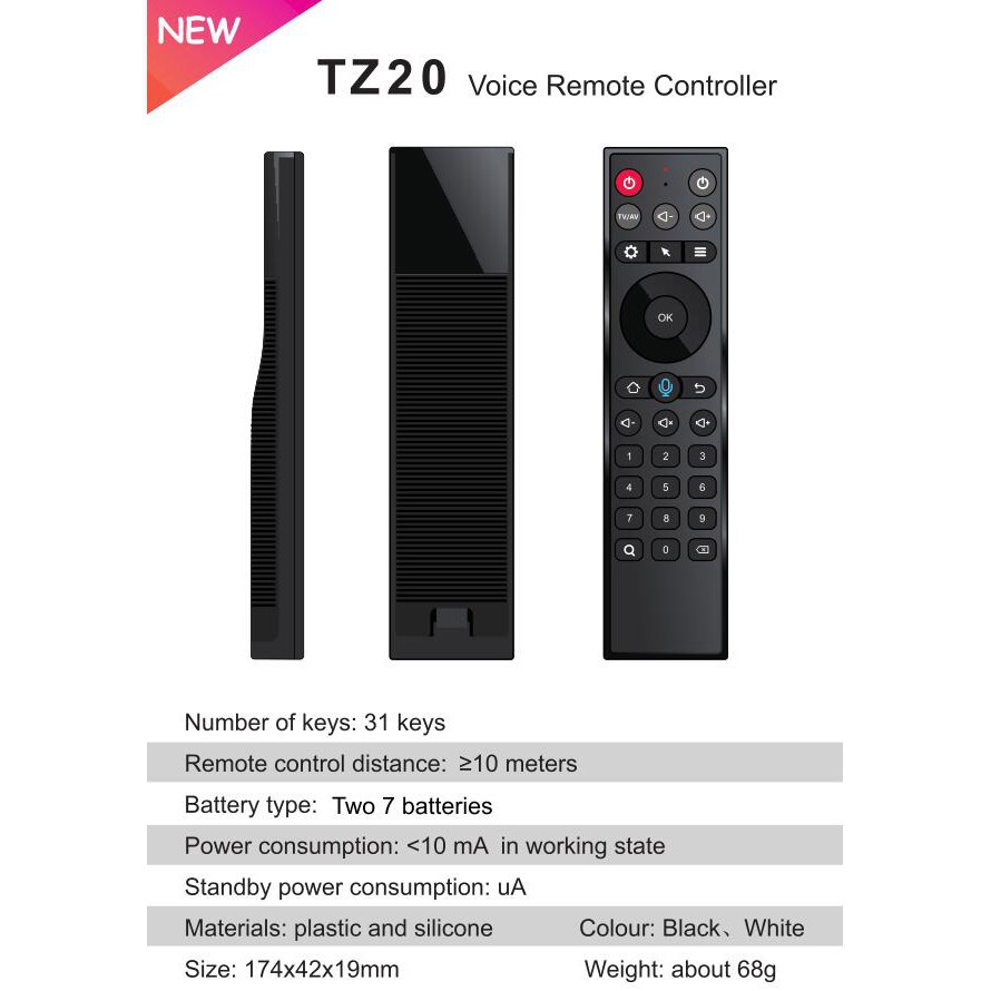TZ20 là điều khiển có tìm kiếm giọng nói, không có chuột bay