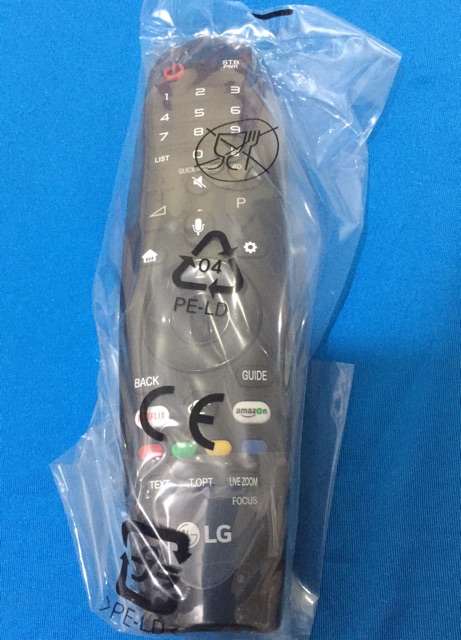 Remote điều khiển LG 2018 hàng chính hãng, chất lượng tiêu chuẩn LG trên toàn thế giới.Tivi LG sử dụng remote mỗi đời khác nhau nên phải đúng mẫu đúng modern năm mới có thể sử dụng!Lưu ý nên sử dụng pin tốt để kéo dài tuổi thọ sản phẩm!Trọng lượng: 99gram