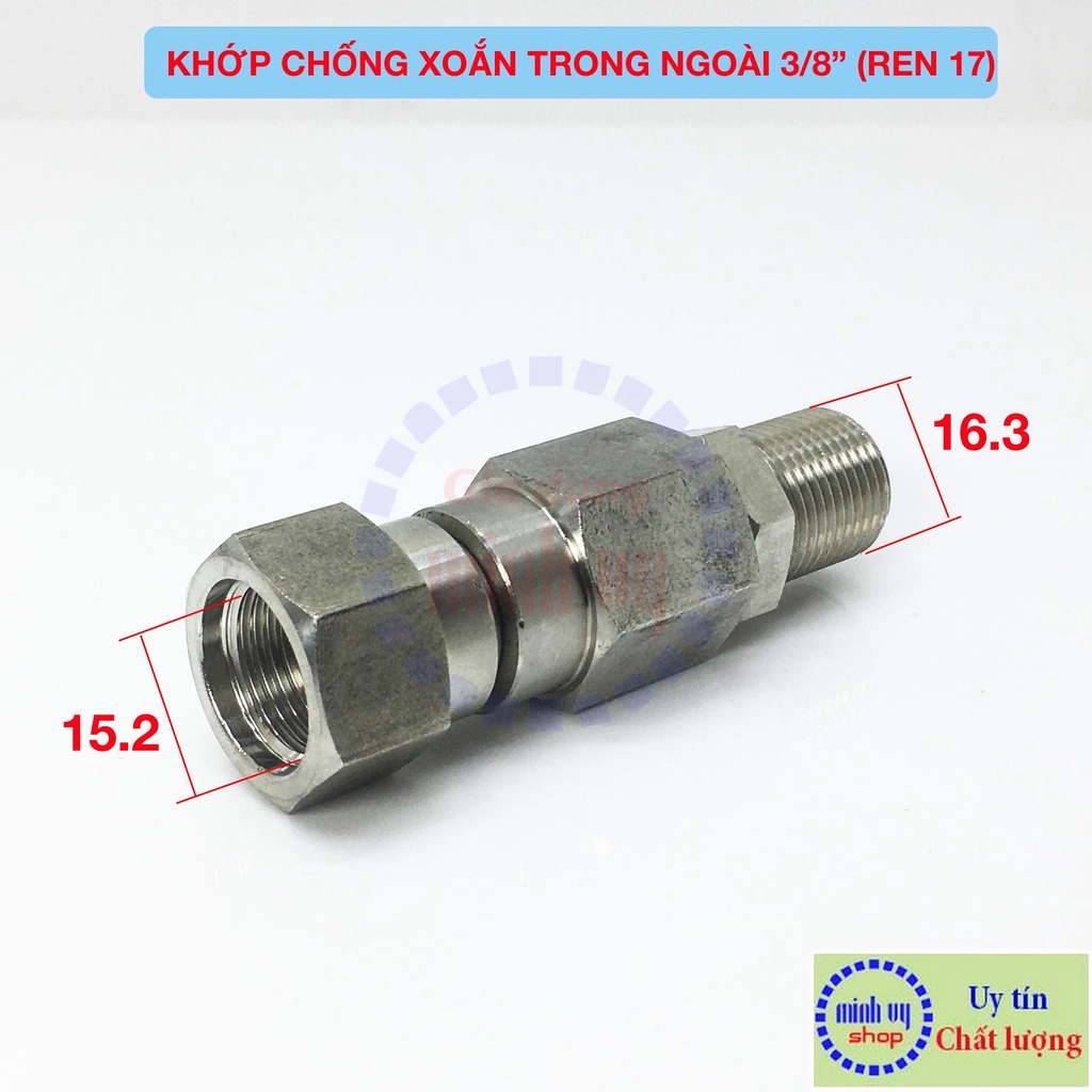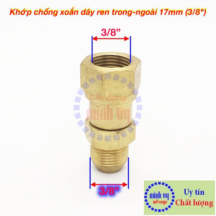 - Kích thước ren của Khớp xoay nối dây: 1 đầu ren ngoài và 1 đầu ren trong 3/8"17mm- Cân nặng: ~100g