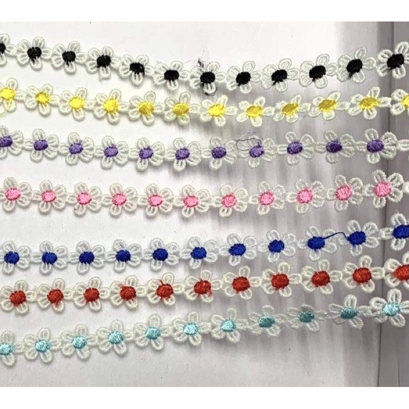 Ren cotton cánh trắng, nhị màu 1,5cm dùng trang trí quần áo, làm handmade, có thể cắt rời từng hoa.Giá MELIon