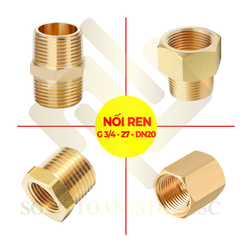 - Đầu nối ren thau 27 để kết nối hai ống ren với cùng đường kính hoặc đường kính khác nhau.