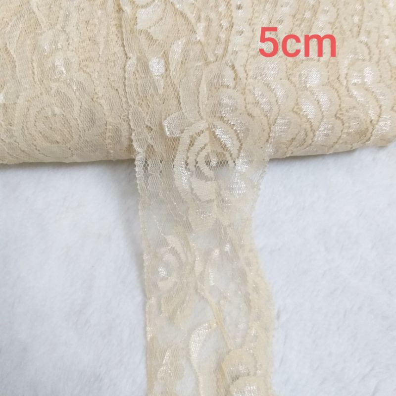 Giới thiệu Ren lưới , màu nâu lợt, size 5cm (5 mét/12k)