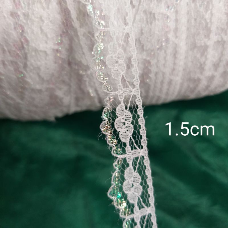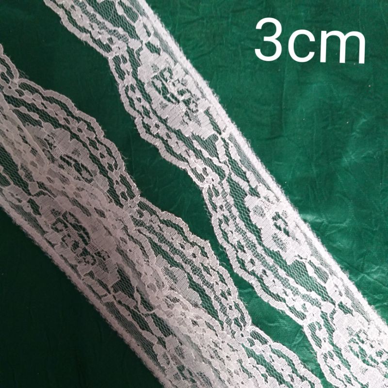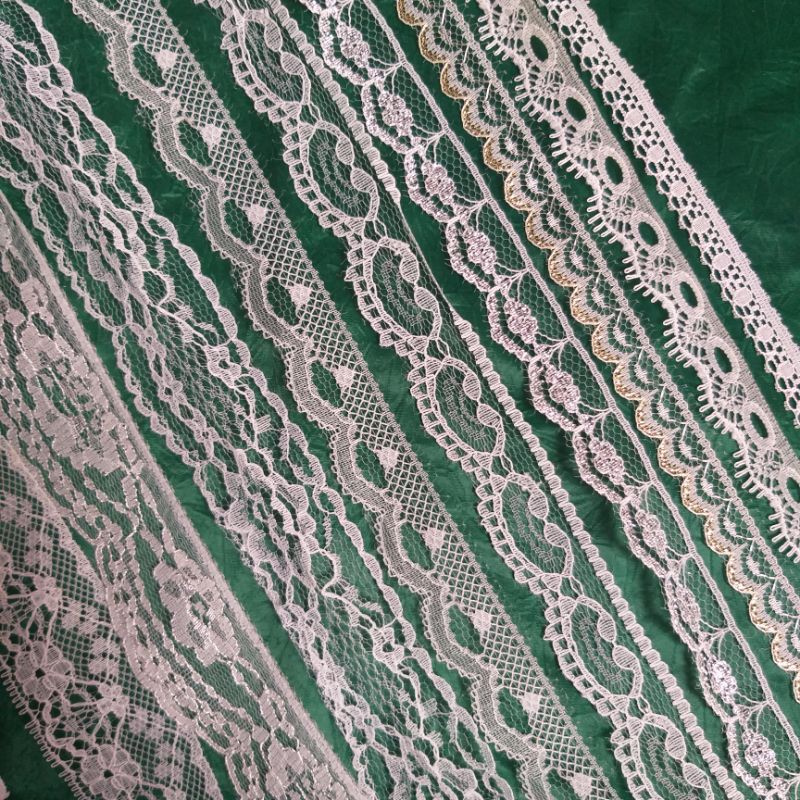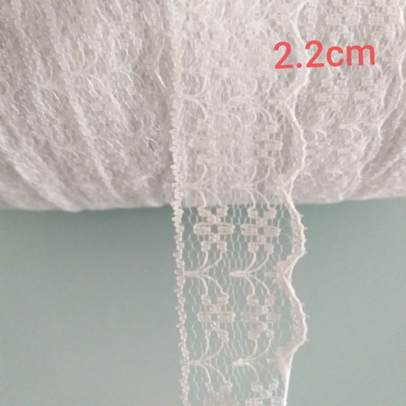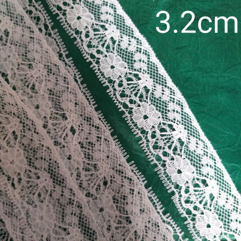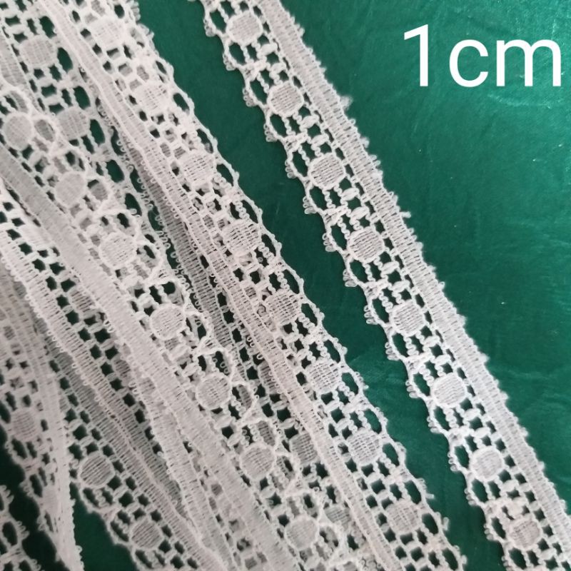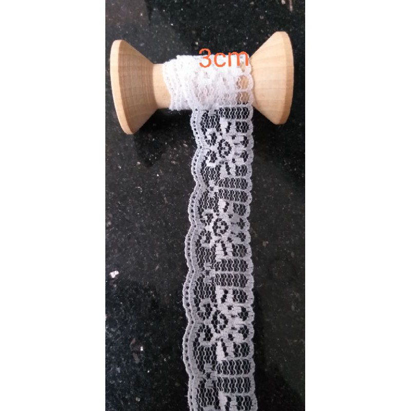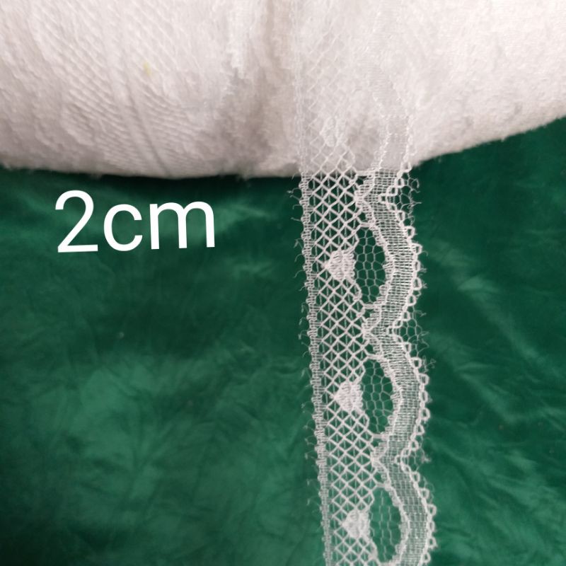 Giới thiệu Ren lưới poly màu trắng,size từ 1cm đến 3.2cm.(10 mét /17k)